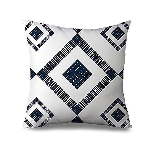 Fiuoleiw Geometric Pillow Cover Navy Blue Decor Square Cushion Cover Canvas Navy and White Pillow Sham for Sofa Geometry Throw Pillows for Couch 18 x 18" Both Sides