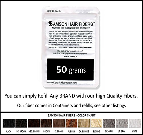 -. Binding : Misc. -. Brand : Samson Hair Fibers -. EAN : 0821040555547 -. Feature : Hot Concept- Refill your empty Toppik xfusion nanogen containers / The best hair building fibers-100% Money back Guarantee / 50% of most comparable brands / Original Samson Hair Fibers Instantly fills in balding & thinning areas / Builds hair with natural fibers , No wool, no irritations, No Mess -. Label : Keratin Research -. Manufacturer : Keratin Research -. MPN : 821040555547 -. PackageQuantity : 1 -. PartNumber : 821040555547 -. ProductGroup : Beauty -. ProductTypeName : BEAUTY -. Publisher : Keratin Research -. Studio : Keratin Research -. Title : LIGHT BROWN Original Samson Hair Building Fibers Refill suitable for Toppik Nanogen Xfusion 50 Gr LIGHT BROWN color FREE SHIPPING USA -. UPC : 821040555547