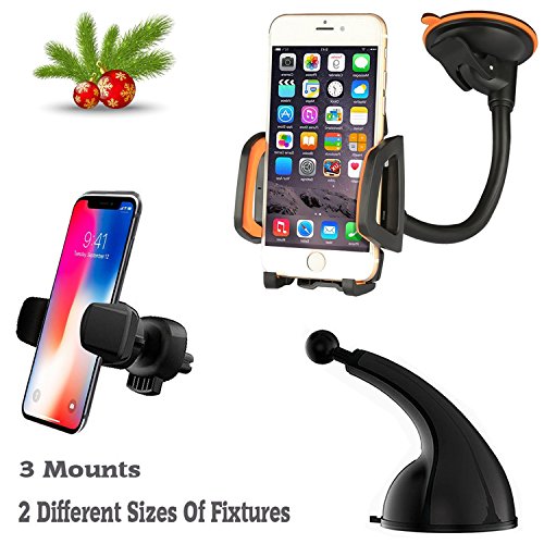 ◆【More Installation Options】: Two differend size fixtures are suitable for three mounts.(2 Holders,3 Mounts).This car phone mount provides air vent mount, windshield mount and dashboard mount, the best choice for Christmas gifts.