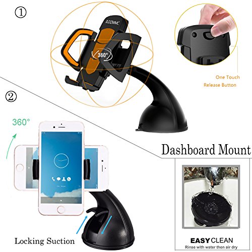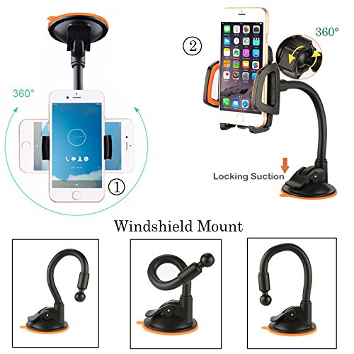 ◆【Suction Cup Phone Mount】: Short arm car phone mount that is with silicone suction cup and suitable for dashboard mount. Bendable long neck phone mount is only suitable for windshield mount. (NOTE: Please avoid car phone mount direct exposure to the sun as this may affect the function of your car mount.)