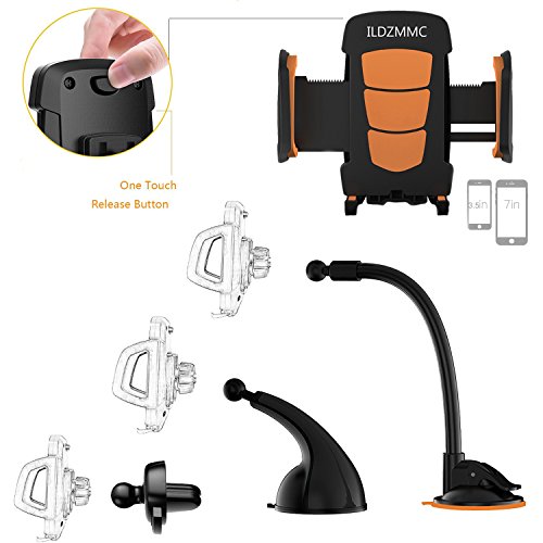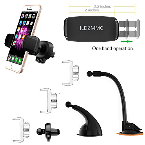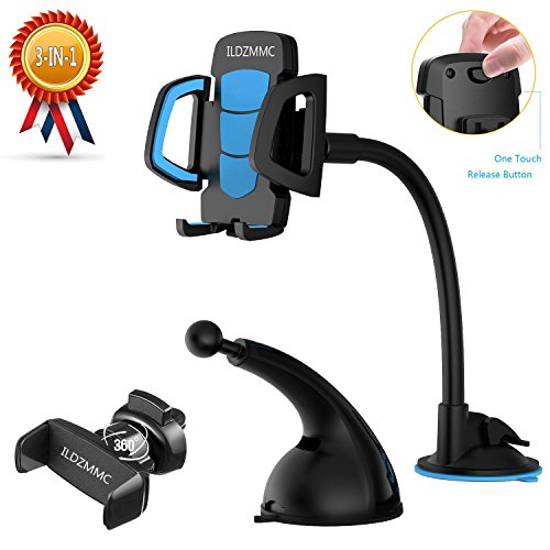 ILDZMMC Car Phone Mount 3-in-1 Multi-function Phone Holder it can be mount to your car's air vent dashboard mount windshield mount for convenience.More Installation Options:Provide 2 holders and 3 mounts ,you can mix them freely for installation.ILDZMMC 3-in-1 Multifunctional fully 360°rotation car phone mount will solve all these problems like using the phone for navigation and keep you safe while driving.