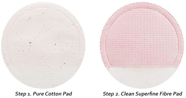 side. Gently roll on pore concerned areas using the Step 2. Clean Superfine Fibre Pad side