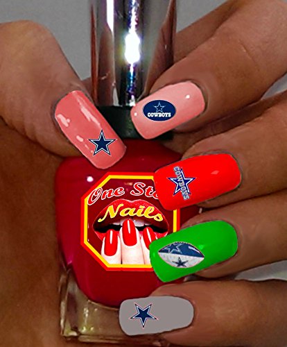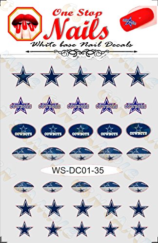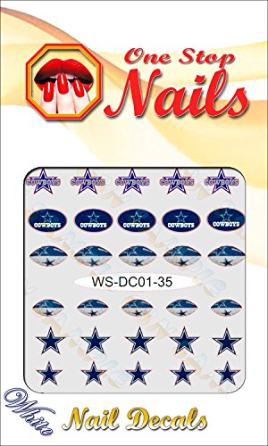 Top Quality Bright and Colorful Vinyl Peel and Stick Die-Cut Decals with White Backing with Dallas Cowboys Art and Logos. These Nail Decals are made of thin Vinyl and are Precisely Pre-Cut. Will Look Good on ANY Color of Nail Polish.Feature
