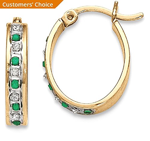 ICECARATS DESIGNER JEWELRY 925 STERLING SILVER GOLD PLATED DIAMOND GREEN EMERALD OVAL HOOP EARRINGS EAR HOOPS SET FOR WOMEN