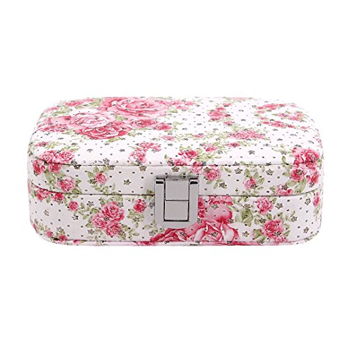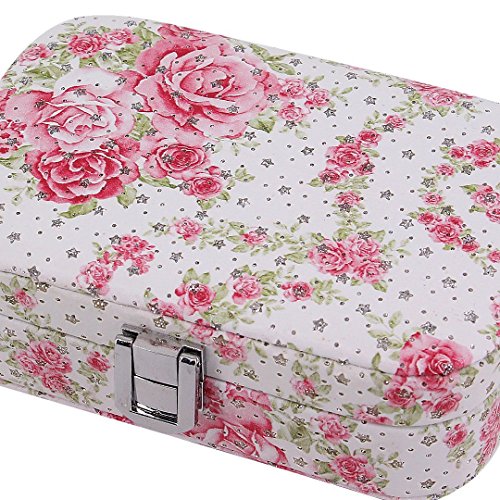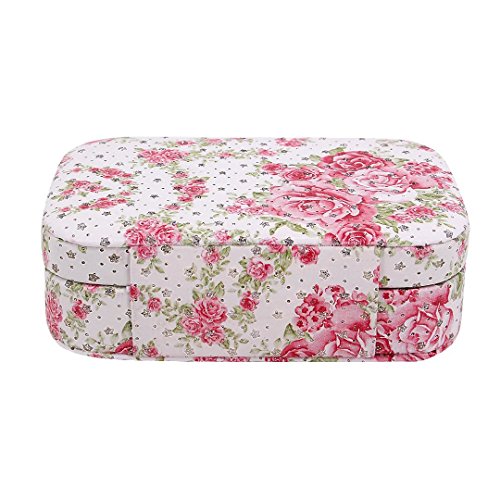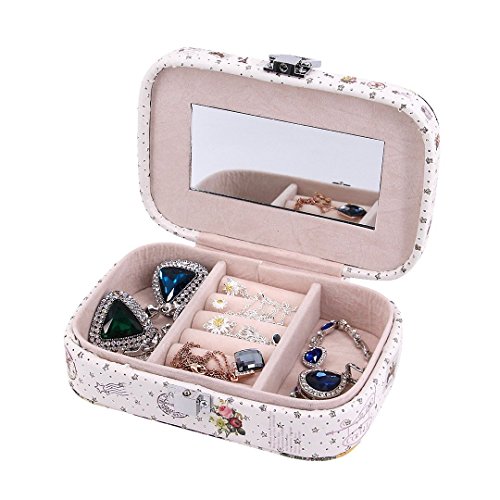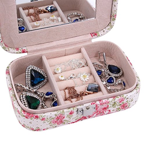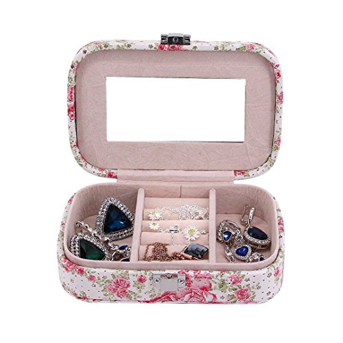 La moriposa Mini Cute Red Flowers Jewelry Box Storage Box With Mirror Jewel Organizer Display Storage Case for Necklace Earrings Rings