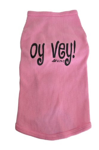 -. Binding : Misc. -. Brand : Ruff Ruff and Meow -. Color : Pink -. EAN : 0781589544252 -. Feature : Available in a Variety of Sizes / 100% Cotton Prewashed to Prevent Shrinkage & Garment Dyed to Prevent Fading! / Proudly Made in the USA with Love / Large is typically appropriate for Dogs 20-35 lbs, Fits Chest Circumference 18"-23"; Shirt Length 14.5" -. Label : Ruff Ruff & Meow -. Manufacturer : Ruff Ruff & Meow -. Model : TANK -. MPN : TANK -. PackageQuantity : 1 -. PartNumber : TANK -. ProductGroup : Pet Products -. ProductTypeName : PET_SUPPLIES -. Publisher : Ruff Ruff & Meow -. Size : l -. Studio : Ruff Ruff & Meow -. Title : Ruff Ruff and Meow Dog Tank Top, Oy Vey!, Pink, Large -. UPC : 781589544252