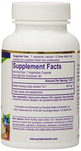 Paradise Herbs Vegetarian Capsules, Reishi Supreme, 60 Count