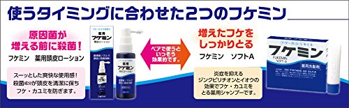 ● [Product Description] ● "Fukemin soft A 10g * 5 pieces " is to prevent dandruff itching by the action of zinc lipid lithium on and sulfur medicated shampoo to prevent the smell of the hair-scalp sweat. ● wet well the hair with warm water took the appropriate amount please shampoo lather well in the manner rubbed into the scalp. ● 10g * 5 pieces. ● quasi-drugs. ● [efficacy] ● prevent dandruff itching. ● prevent sweat odor of hair scalp. ● [How to use] ● sufficient wet scalp the hair with warm water took the appropriate amount (one This product is 1-2 times) please let enough bubbled as rubbed into the scalp. ● Please carefully washed from then on as it is of the state for more than 2-3 minutes. ● * is especially awful person. Dandruff please wash twice. ● * 2 weeks of initially twice weekly then please use once every 1-2 weeks. ● [display component] ● lauryl sulfate parabens Yellow No. 5 Yellow No. 4 perfume ● [active ingredient (in 100g)] ● sulfur 1.0g [Notes on use] zinc pyrithione 1.5g ● ● In addition to shampoo please do not use. When you do not meet the scalp ● that is in the case such as the following please discontinue use. ● If you continue to accept ...