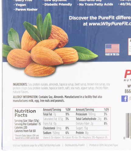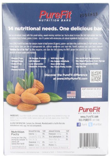 -. Binding : Misc. -. Brand : PureFit -. Feature : Award-winning nutrition bars / Kosher-certified and vegan-approved / 100% All-natural ingredients / No artificial sweeteners / Labeled gluten free -. IsAdultProduct : 0 -. Label : PureFit -. LegalDisclaimer : Actual product packaging and materials may contain more and different information than what is shown on our website. We recommend that you do not rely solely on the information presented and that you always read labels, warnings, and directions before using or consuming a product. Please see our full disclaimer below. -. Manufacturer : PureFit -. NumberOfItems : 1 -. PackageQuantity : 1 -. ProductGroup : Health and Beauty -. ProductTypeName : GROCERY -. Publisher : PureFit -. Studio : PureFit -. Title : PureFit Nutrition Bar, 2-Ounce Bars (Pack of 15)