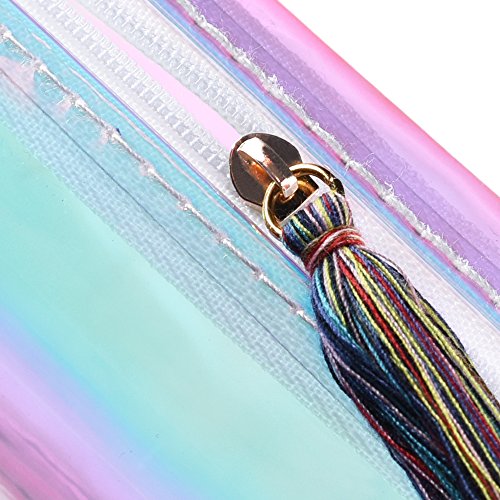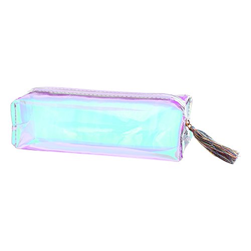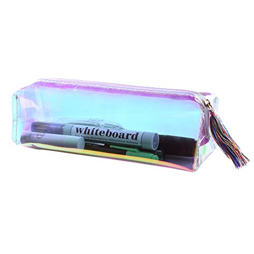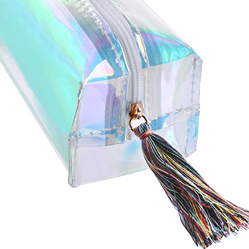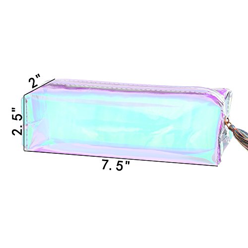BCP 7.5 x 2.5 x2” Laser Transparent Zip Pencil Case Stationery Pouch Cosmetic Bag with Tassel Zipper