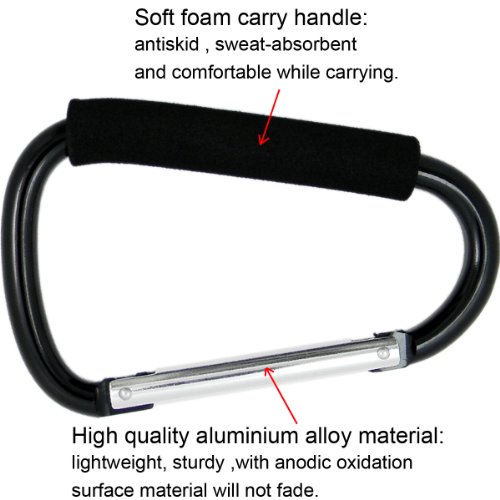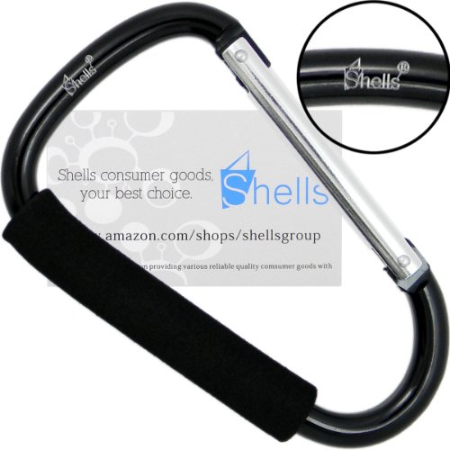Shells Classy Black Color Extra-large D-Shape Super-handy Snap Hook Hanger Bags Holder Carrier Mommy Hook Carry Handle With Soft Foam Grip