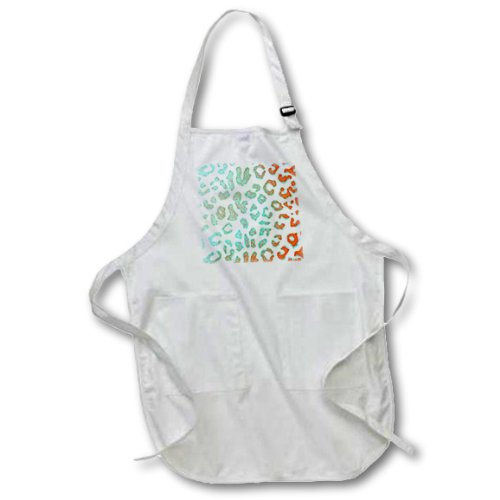 3dRose apr_30855_4 Orange and Turquoise Leopard Print Animal Print Fashion Full Length Apron with Pockets, 22 x 30", Black