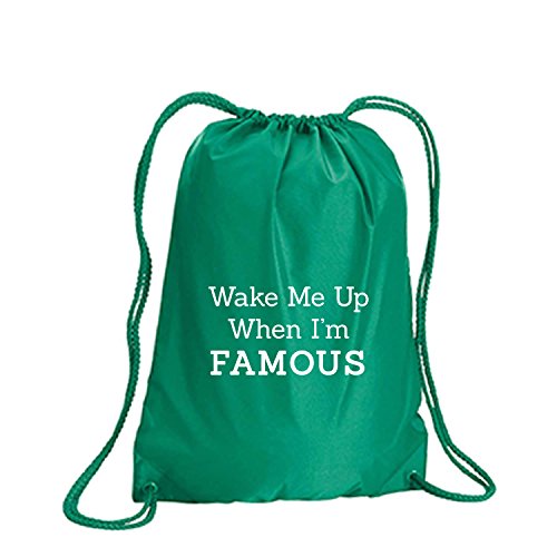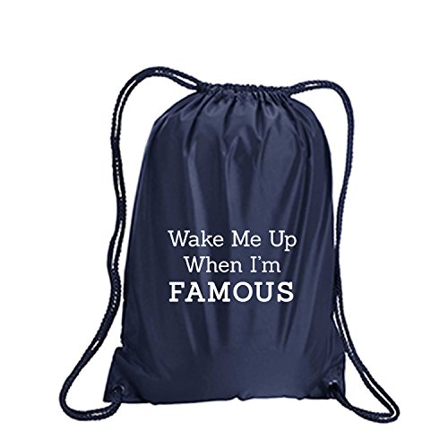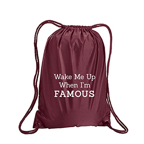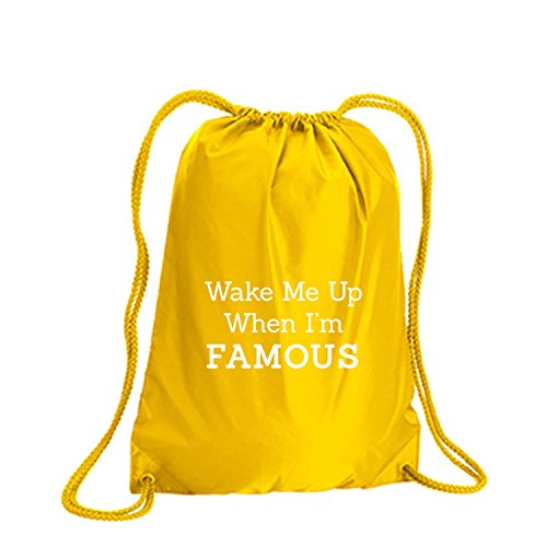 Product Description This durable and stylish nylon tote features "Wake Me Up When I'm Famous" on a cinch pack tote with white ink. Bag comes in small and large sizes and is made of a durable 210 Denier nylon and has color-matched draw cords. Printed in the USA on an imported bag. 0