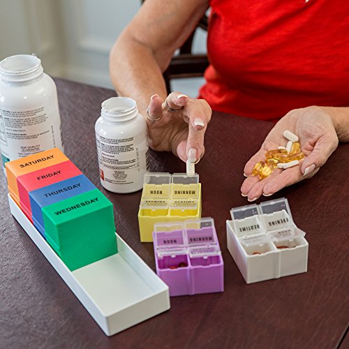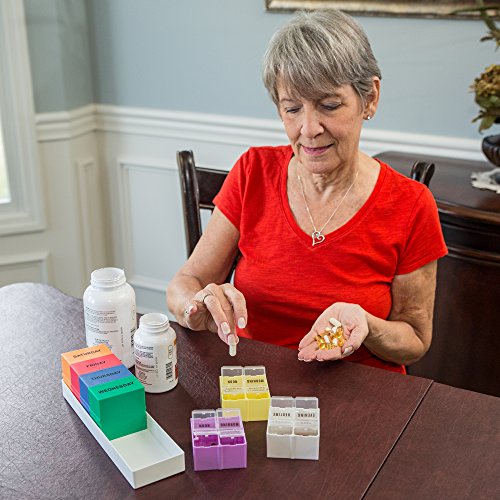 Pill Organizer - Medication Management Made Stylishly Simple. Need to tame the chaos of managing medications for your favorite senior? Had your fill of cheap pill boxes that either pop open too easily-or are nearly impossible to open at all? Our Weekly Pill Box by Stuff Seniors Need solves these problems in the most stylish way possible! Makes Life Easier for Caregivers Seniors This 7-day, rainbow color-coded organizer lets you set up medication a week in advance, taking the guesswork out of what pills to take when. Unlike most pill holders, we've even included separate compartments for different times of day, AM and PM. These "buckets" open with ease (great for seniors with arthritis) and hold up to several pills at once. Free BONUS Guide Includes our FREE guide, "19 Services Available to Seniors." Learn how seniors can get access to dental care, cell phones more at either free or vastly reduced prices. Don't miss out! Multi-Unit Discounts Available... 5% off for ordering 2 6% off for ordering 3 8% off for ordering 4 10% off for ordering 5 Discount automatically applied at checkout Click "Add to Cart" to buy now! Your Satisfaction is 100% Guaranteed. 0 |