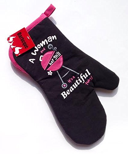 "A Woman and Her Grill It's Beautiful Thing!" Women's Grilling Oven Mitt - 14" Extra Long
