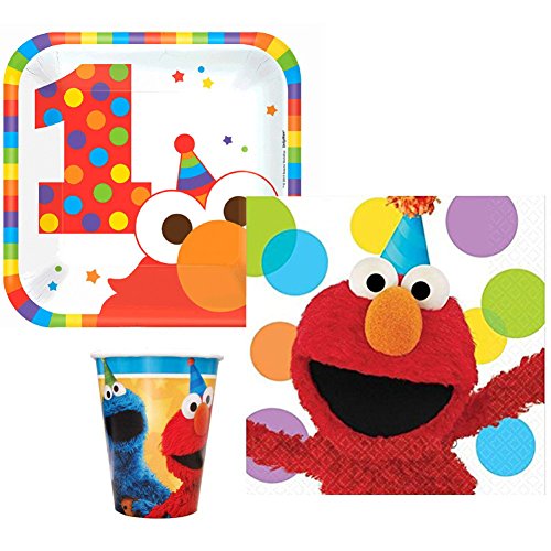 -. Title : Amscan Sesame Street Elmo Party Pack for 16 Guests - Dessert Plates, Luncheon Napkins, and Cups