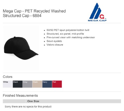 Product Description- 50/50 recycled PET spun polyester/cotton twill - Structured, six-panel, mid-profile - Pre-curved visor with matching undervisor - Sewn eyelets - Velcro® closure0
