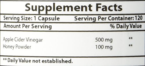 Our Apple Cider vinegar capsules contain 500 mg of apple cider & 100 mg of honey powder per capsule - 120 Capsules per bottle