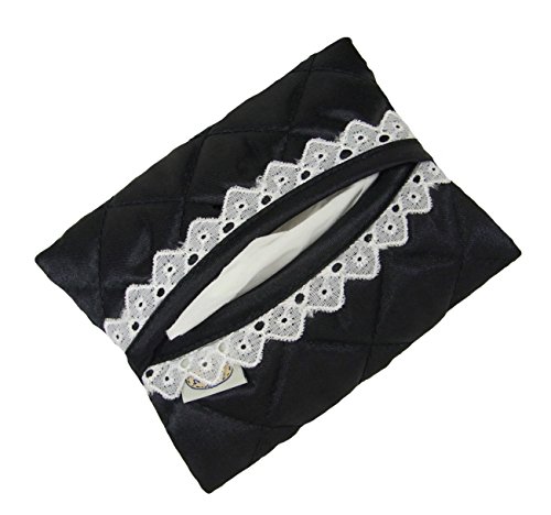 -. Title : リボンバッグで有名なタイ・NaRaYa(ナラヤ) 携帯用 かわいい 白レース付・ポケットティッシュケース・サテン(ブラック) NBS-01A