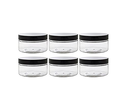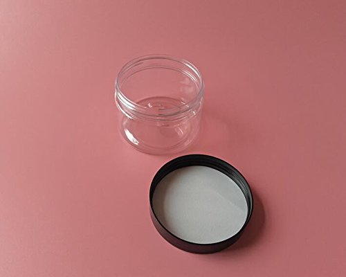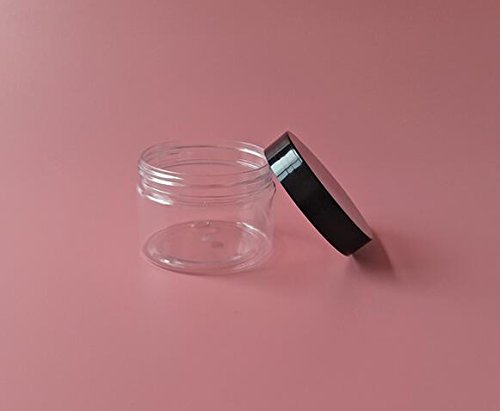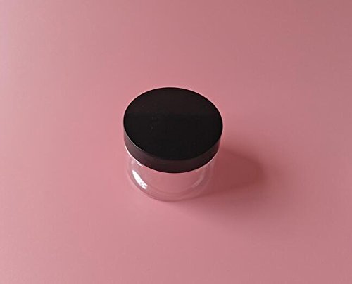 - 4 oz / 120 ml Clear PET plastic shallow low profile jar with smooth black foam lined lids.