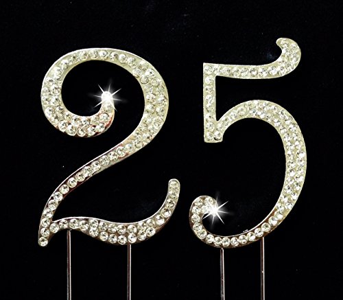 25th Birthday / Wedding Anniversary Number Cake Topper with Sparkling Rhinestone Crystals - 2.75