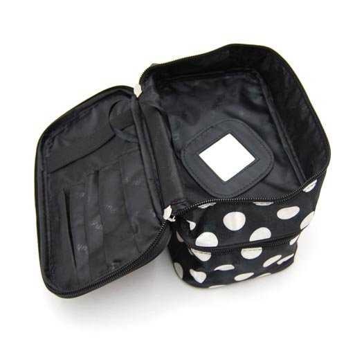 - Title : DuaFire Cosmetic Bag Double Layer Dot Pattern Travel Toiletry Bag Organizer With Mirror (Black)