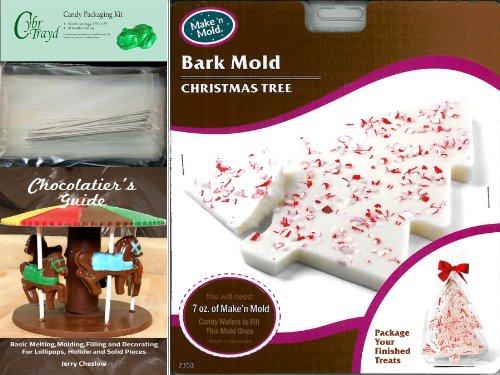 Cybrtrayd Tree Bark Make N' Mold Chocolate Candy Mold with Chocolatier's Bundle of 25 Cello Bags, 25 Silver Twist Ties and Chocolatier's Guide