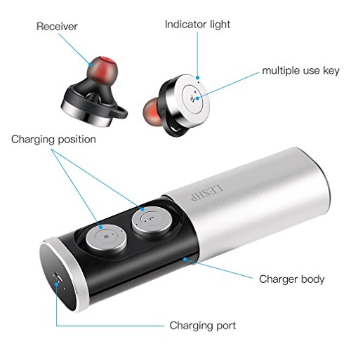 Bluetooth Earbuds LESHP True Wireless In-ear Headphone with Built-in Microphone and Charging Box for Driving and Sports (A Pair)