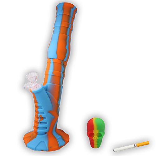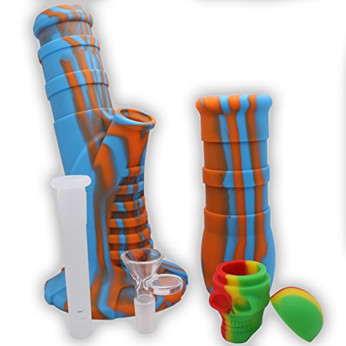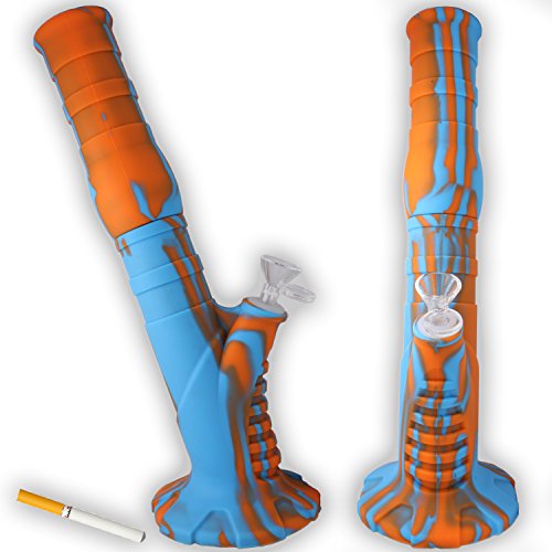 Silicone Water Rig (13.5”) – Travel & Easy to clean - Portable Detachable Unbreakable (Blue / Orange)