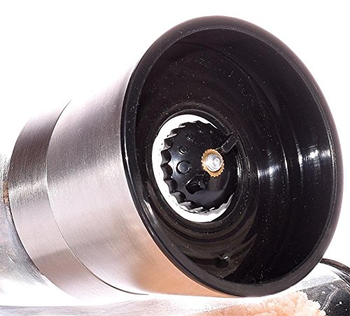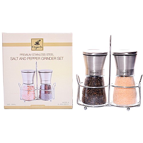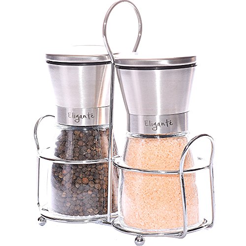 - PREMIUM QUALITY Glass and Brushed Stainless Steel Salt and Pepper Grinder Set with Stand. Stylish, Elegant, and Modern for the special event, dining table, or even the kitchen. *Salt and Pepper not included*