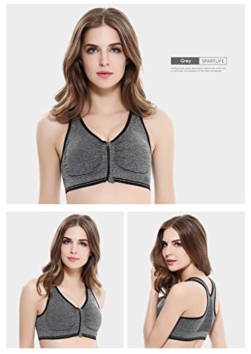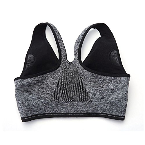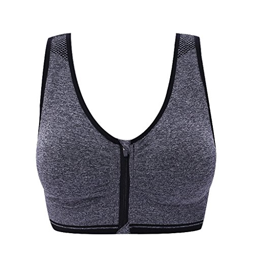 Senchanting Zip-front Pullover Racerback Padded Wirefree Push up Yoga Sports Bra (Grey,L)