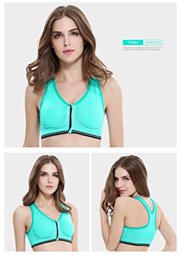 Senchanting Zip-front Pullover Racerback Padded Wirefree Push up Yoga Sports Bra (Green,L)