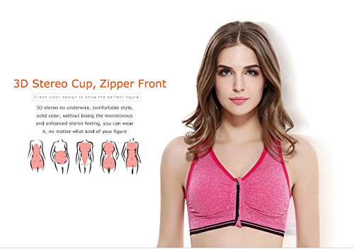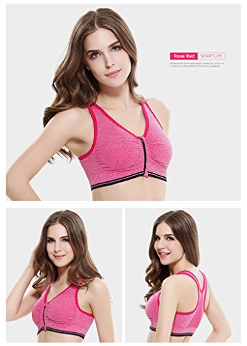 Senchanting Zip-front Pullover Racerback Padded Wirefree Push up Yoga Sports Bra (Red,L)