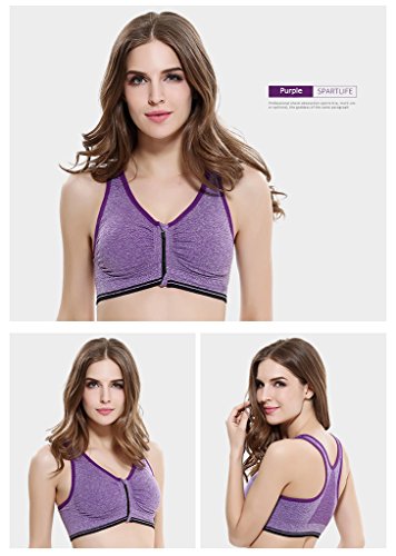 Senchanting Zip-front Pullover Racerback Padded Wirefree Push up Yoga Sports Bra (Purple,L)