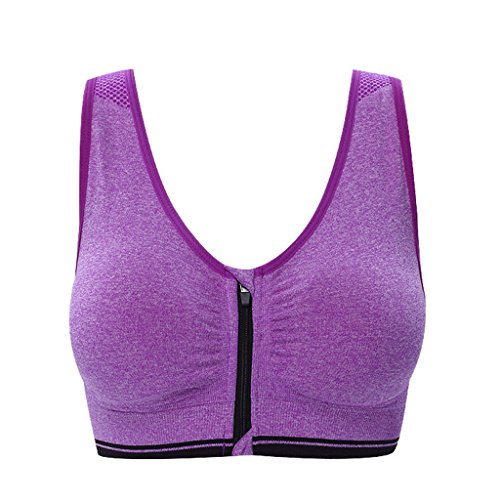 Senchanting Zip-front Pullover Racerback Padded Wirefree Push up Yoga Sports Bra (Purple,XL)
