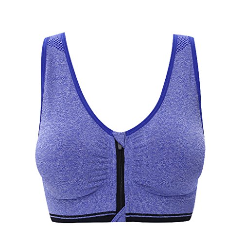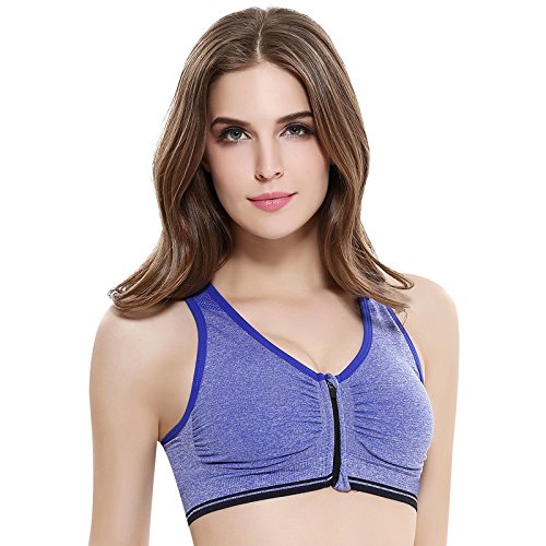 Senchanting Zip-front Pullover Racerback Padded Wirefree Push up Yoga Sports Bra (Blue,XL)