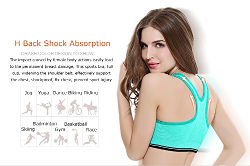 Senchanting Zip-front Pullover Racerback Padded Wirefree Push up Yoga Sports Bra (Green,M)
