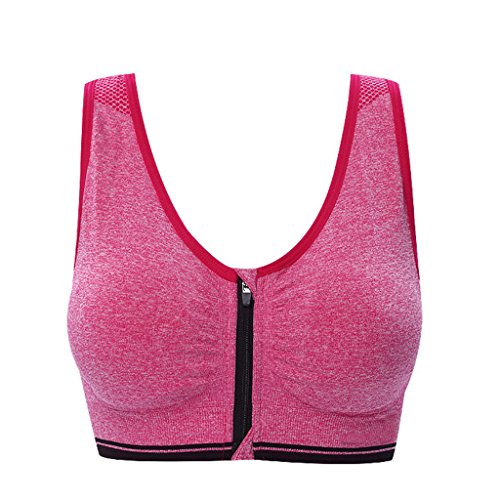 Senchanting Zip-front Pullover Racerback Padded Wirefree Push up Yoga Sports Bra (Red,XL)
