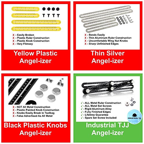 Angel-izer by Industrial TJJ, NEW IMPROVED All Metal Multi-Angle Ruler Template Tool Made of Premium Aluminum INCL BONUS Spare Set Bolt - Perfect for Builders Craftsman Carpenters Tilers Roofers & DIY