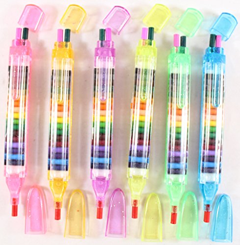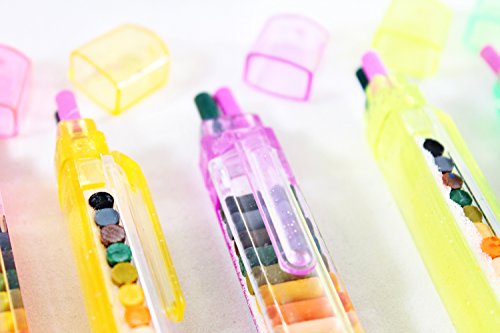 - A RAINBOW OF COLORS FOR EVERYONE TO ENJOY: Our transparent glitter stacking point crayons come in six different shades of translucent neon colors: orange, pink, blue, green, yellow, and purple. Each one features 20 vividly colored interchangeable crayons inside for unlimited creative potential.