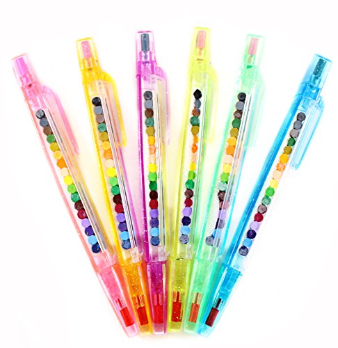 - SURPRISE YOUR KIDS OR REWARD YOUR STUDENTS WITH OUR ASSORTED SPARKLING STACKING CRAYONS: Look no further for fun art supplies for kids. This set comes with 24 different stacking crayons that are approximately 5.5 inches tall and feature a sturdy cap and interchangeable colors.