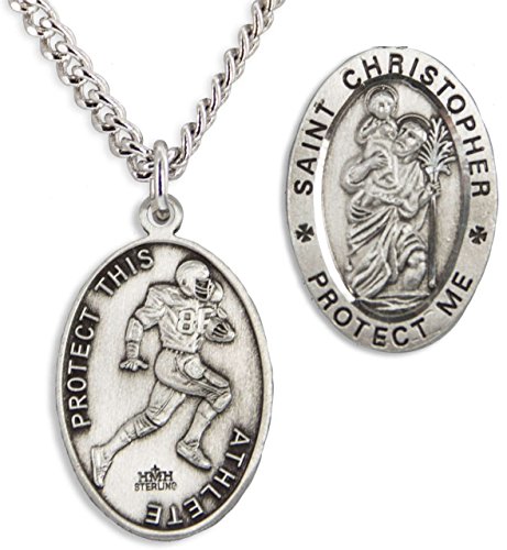 -. Binding : Jewelry -. Brand : Heartland Store -. Department : mens -. Feature : SIZING:3/4 inch Wide x 1 inch High / QUALITY: This top quality pendant is made from Genuine .925 Sterling Silver / Pendant front has an image of St. Christopher. Raised outer border displays the text ST. CHRISTOPHER PROTECT ME. / Pendant back displays an image of a Football player and the words PROTECT THIS ATHLETE. / CHAIN INCLUDED: Tarnish Resistant 24 Inch Endless Rhodium Plated Heavy Curb Solid Brass Chain -. Label : Heartland Store -. Manufacturer : Heartland Store -. ProductGroup : Jewelry -. ProductTypeName : FASHIONNECKLACEBRACELETANKLET -. Publisher : Heartland Store -. Studio : Heartland Store -. Title : Heartland Men's Sterling Silver Oval Saint Christopher Football Medal