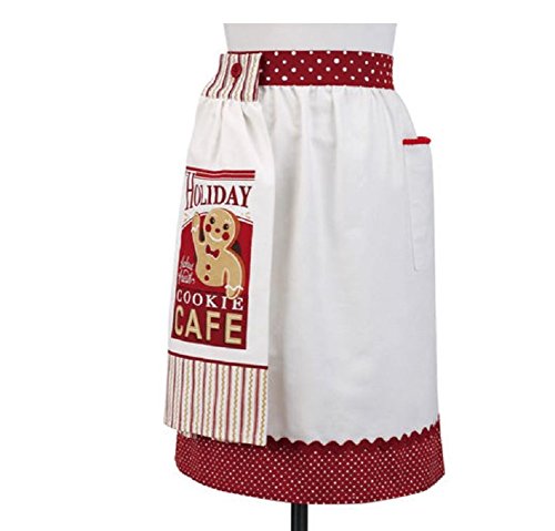 Demdaco Holiday Baking Half Cafe Apron with 2 Assorted Button On Tea Towel