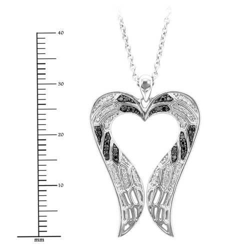 -. Title : Sterling Silver Angel Feather Wing heart shaped White and Black Diamond Pendant Necklace(0.29 Carat)