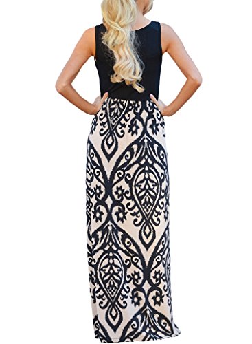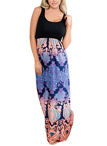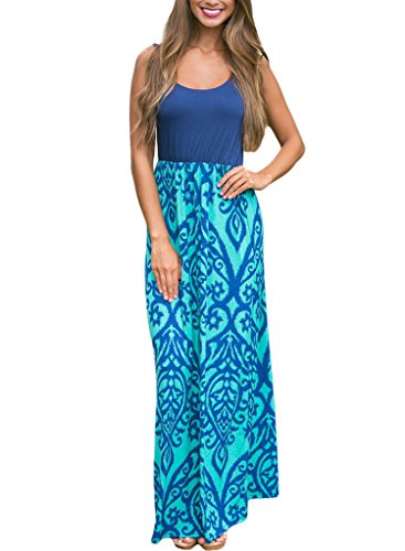 Boho summer maxi dress features casual style, Sleeveless tank top, Sexy scoop neck, Empire waist, Floor-length, Stretchy, Lightweight and comfortable.
