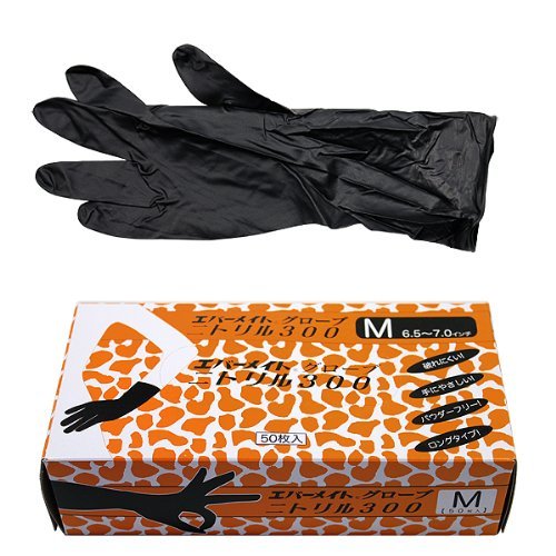 It is a glove in which dirt is not conspicuous because it is a black color with a long type total length of about 300 mm.