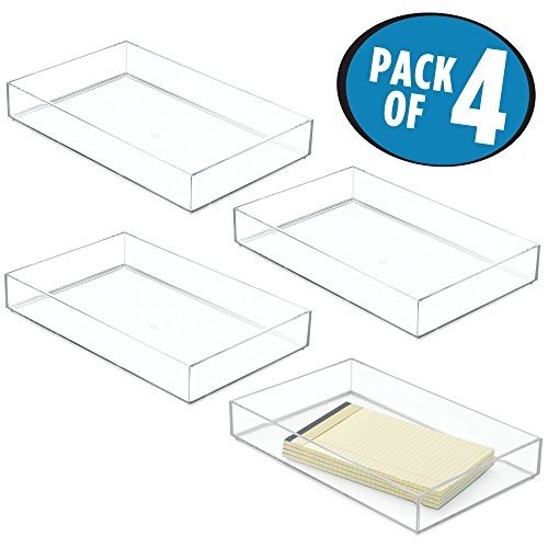 mDesign Kitchen or Office Drawer Organizer for Silverware or Supplies - Pack of 4, Clear