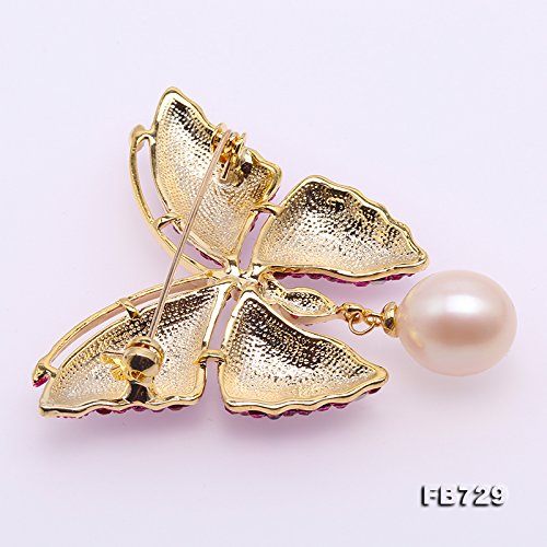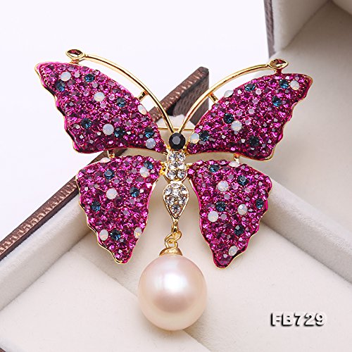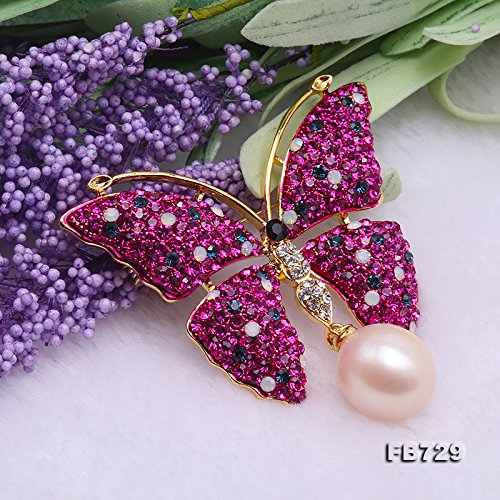 -. Title : JYX Fine Butterfly-style Round Pink 12mm Freshwater Pearl Brooch Pin
