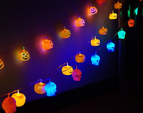 -. Feature : Pendant material: Plastic,String lights length 3.8M/12.5Ft in total,16 LEDs. / Low power consumption with a long service time, safe and reliable,energy saving and pretty performance, easily to build a scary atmosphere. / Battery Operated LED String Light, Non-waterproof, Suitable for Indoor Use. 3 x AA batteries are Required (Not Included). / Ghost/Pumpkin Style Halloween LED String Lights, perfect decoration for Halloween themed parties, carnival, festival, celebration and special occasion. / Perfect for Halloween windowdisplay and many other holidays and festive lighting.
