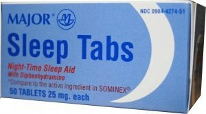 -. Binding : Health and Beauty -. Brand : Sominex -. EAN : 0309044274515 -. Feature : Compare to the same active ingredients in Sominex and Save! / Sleep Tabs is a clinically proven sleep aid designed to relieve occasional sleeplessness. -. Label : MAJOR PHARMACEUTICALS -. Manufacturer : MAJOR PHARMACEUTICALS -. PackageQuantity : 6 -. ProductGroup : Health and Beauty -. ProductTypeName : HEALTH_PERSONAL_CARE -. Publisher : MAJOR PHARMACEUTICALS -. Studio : MAJOR PHARMACEUTICALS -. Title : [6 Pack] Sleep Tabs Night-time Sleep Aid 50 Ct Tablets (Pack of 6) *Compare to the Active Ingredients in Sominex® & Save!* -. UPC : 309044274515